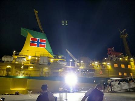 私が竹芝桟橋に来るのは、2018年4月に小笠原諸島の父島・母島に出かけて以来7年ぶりだ。旅客ターミナルの自動発券機にQRコードを読み込ませて受け取ったチケットに印字された番号は3甲板のG209番だった。2等船室の10人部屋に私ひとり。貸し毛布1枚を100円で借りた。通路の反対側は8人部屋に男性客がひとり。隣の部屋には誰もいない。ゆったりしていて気持ちがいい。22時30分に竹芝桟橋を定時出航した大型客船『橘丸』は翌朝5時に三宅島、6時に御蔵島に寄港し、9時に八丈島底土港に着岸する予定だ。竹芝桟橋から八丈島まで10時間の船旅である。ちなみに飛行機だと羽田から八丈島までは50分である。