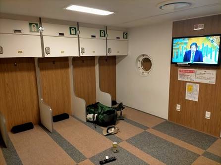 船内の自動販売機での缶ビール販売は、運転免許証をカードリーダーに差し込み年齢確認したあと、販売許可が出ないと買えない自動販売機だった。既に夕食は自宅で済ませてきたので、キリングレープフルーツ本搾り350mlを1本買った。部屋のテレビはBS放送が受信できたので、船内消灯までの1時間を「矢沢永吉ディープナイト」という番組を観た。