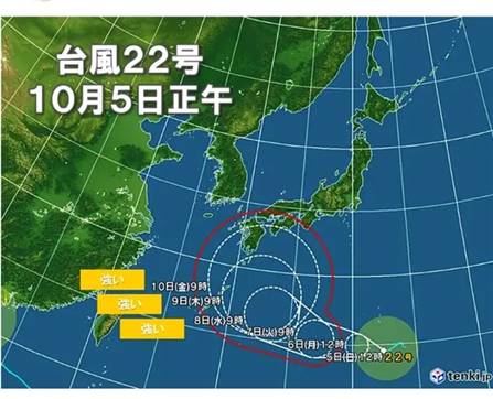 小笠原父島の南に台風22号が発生しており、今日12時の進路予測では九州・四国・本州に接近となっていたが、16時35分の予測では急に東にUターンして本州に向かうようだ。明日八丈島に着いたら10月10日帰宅の定期船は欠航になるだろうから、10月7日便に変更しようと想う。