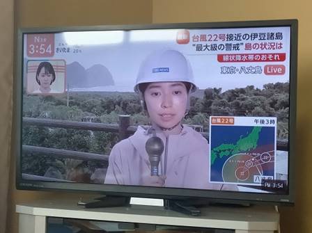 19時00分 NHK放送によると、最大瞬間風速70mは時速に換算すると250kmで、新幹線のスピードに該当するという。いやはや凄い台風が来るものだ。伊豆諸島、八丈島、青ヶ島村には暴風波浪特別警報が発出されている。私は2箇所のスーパーを訪れたが、定期船が運行されていないので食料品が枯渇してきているようで、いずれも食料品コーナーは品薄状態で空っぽのところもあった。