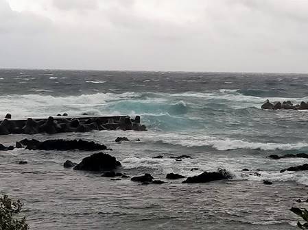 私がいる底土キャンプ場は八丈島の東側にある三根地区に位置しているが、西側の大賀郷地区では16時より海岸線道路が次々に封鎖されている。町の防災無線が明日の定期船も欠航になった、と伝えた。これから八丈島に台風はやってくるのだから、この風と波では当然だろう。こちらとしては早く台風が過ぎ去ってくれるのを待つだけである。