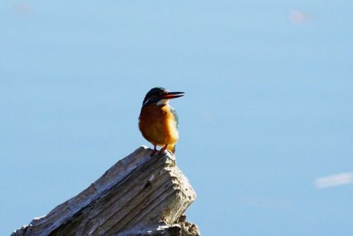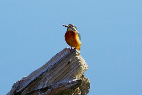 カワセミのオスが棒杭で休んでいた