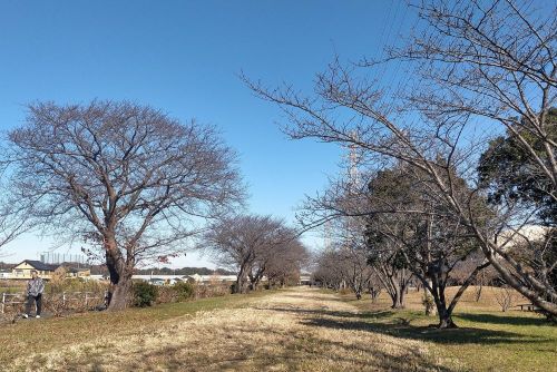 全く風が止まっていたので花見川の川面にも波がたっていなかった。魚がジャンプした時にのみ同心円の波紋が広がっていくだけだった。千本桜公園のサクラは紅葉を終えて葉を落としていた。葉が落ちたなかでもジュウガツザクラが小さな花を咲かせていた。