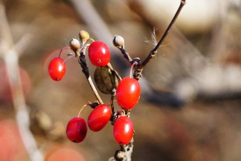 千本桜公園に楕円形で深紅色に熟したハナミズキの実がなっていた。近くでヒヨドリがかまびすしく騒いでいるので、この実を食べに来たのだろう。私も一粒口のなかに入れて噛んでみると、ものすごく渋い味がした。人間には食べられない実だった。ヒヨドリがあまりにも鳴き叫ぶので、その場を離れた。