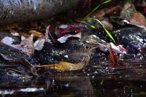 ジョウビタキも水浴びを始めた
