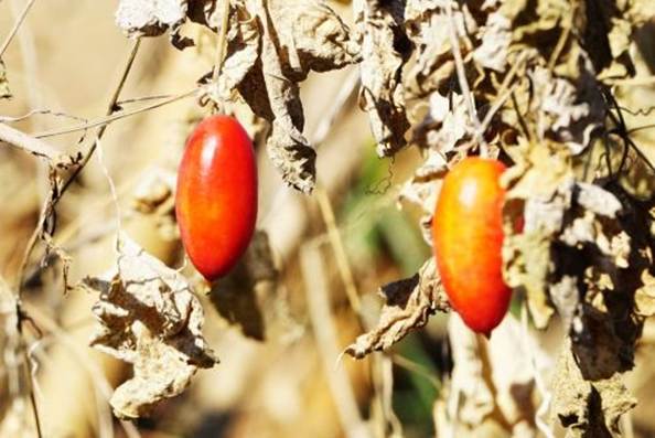 カラスウリが朱色に輝いていた
