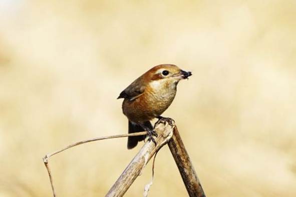 獲物を捕らえたモズのメス