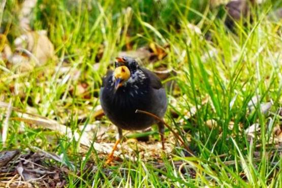 メジロが1羽で蜜を吸いに来たときは鳴き声を出さないが、複数羽で来たときは常にチィチィ鳴きながら枝から枝へ移り蜜を吸っている。この鳴き声はメジロがお互いに意思を通じさせる言葉なのである。『僕には鳥の言葉がわかる』という本を書いた動物言語学者の鈴木俊貴東京大学先端科学技術研究センター准教授は、シジュウカラの研究から鳴き声には「集まれ、危険だ、静かに・・・」など20以上のパターンがあり、シジュウカラの鳴き声は、単語を組み合わせて意思を通じさせる言葉であることを世界で初めて突き止めて論文を発表した人だが、野鳥たちが複数で動いているときは鳴き声で意思疎通をしているのである。