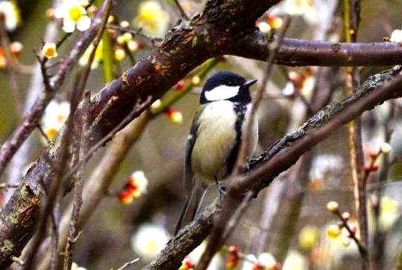 次にやってきたのは黒いネクタイを締めた3羽のシジュウカラだった。シジュウカラはウメの枝皮に潜む虫を探しているようだった。シジュウカラは虫が見つからないと地面に降りて草の実などを探している。野鳥たちは毎日毎日生きるために餌を探している。見つからないと徐々に体力を消耗し死を迎える。そこには自然の中で生きる厳しさがある。バスの乗車時刻が迫ってきたので野鳥観察を終了したが、今回歩いた距離は10.5km、歩数は15619歩だった。