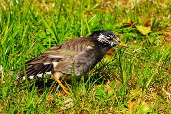 ムクドリは草の実や虫を探していた