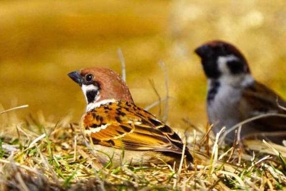 スズメも草の実や虫を探していた