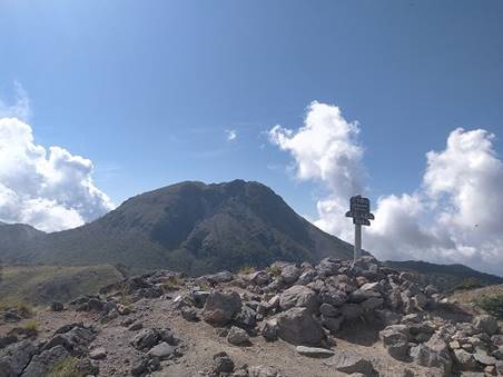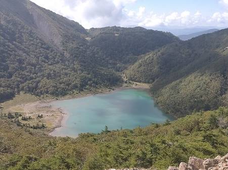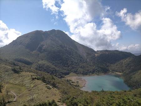前白根山山頂で私と同じ湯元温泉から登ってきた眼鏡をかけた男性に出会った。彼は「奥白根山に登ってきたので、これから湯元に戻るけれど非常にえげつなくきついコースだ」と言った。写真を撮っていると五色山からやってきた男性に出会った。挨拶をしただけで男性も湯元温泉の方に降りていった。私はこれから前白根山を降り、30分ほどで避難小屋に着くだろう。空には少しずつ雲が広がりだしていた。