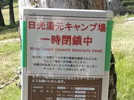 クマ目撃情報多数によりキャンプ場は閉鎖されていた