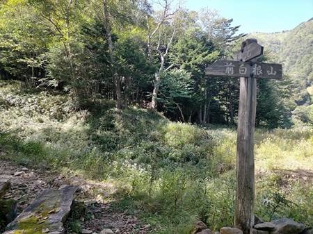 登山口から30分かけてスキー場内を登り、前白根山登山口に着いた。スキー場内は当然のことながら木々が全く生えていないので、直射日光を浴びるので暑すぎた。登山口にはベンチが置かれており、体内から汗が噴き出していたので、木陰に入ってホッと一息つける場所だった。空には薄い下弦の月が見えていた。あと3日もすれば新月になるだろうか。