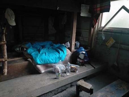 酒で身体が温まったので断熱シートの上に毛布を3枚敷き、シュラフの上に毛布を2枚掛けた。自分で断熱シートもシュラフも持参していたが、全て避難小屋にあったものを使わせてもらった。20時には寝床に潜り込んだが快適な夜だった。