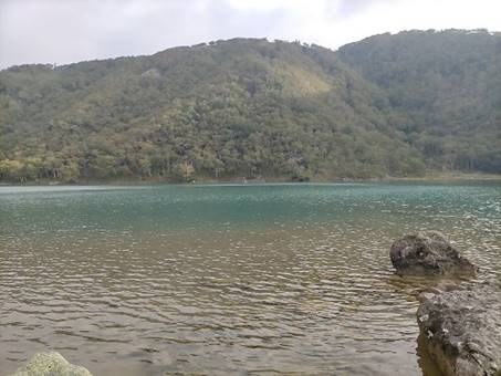 五色沼は風もなく静かな水面だった