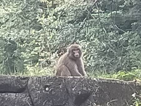 ササ藪の次は樹林帯のなかの急斜面の下りだった。その岩混じりの急斜面を転倒に注意しながら、ようやく大曾根白根山登山口まで降りた。すぐそばに堰堤があり、そこに1頭の野猿が日向ぼっこをしていた。サルは私を見たが何の興味も示さなかった。人慣れしているサルだと思った。クマもそうだが人間の生活圏に近いほど人馴れしていて、クマはニュースで度々出てくるように農作物を荒らし、人に慣れて恐れなくなり危害を加えるのだと想う。