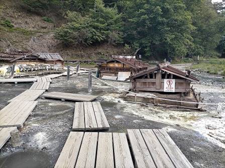 玄関で呼び鈴を押すと、おばあさんが出てきた。入浴料は500円だった。薬師の湯は2m×2mほどの木の湯船に洗い場が2つの小さな温泉だった。湯は乳白色に濁っており、酸っぱい味がした。今月初めに秋田県の玉川温泉や乳頭温泉に出かけたが、それと同じ火山性の硫黄の湯だと想った。狭いながらも私を含めて4人が入っていた。それでいっぱいである。小さいながらもゆっくり入ることができ、心身ともにリラックスできたのである。