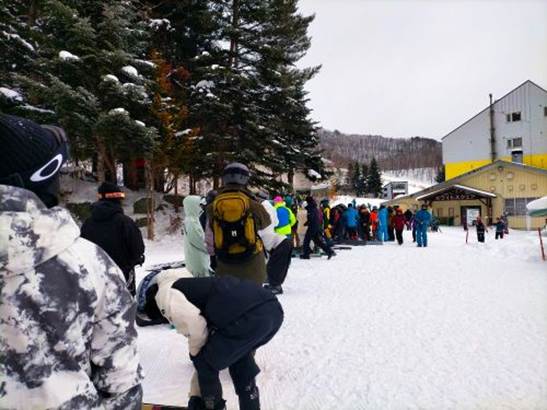 尾瀬岩鞍スキー場で滑る2日目である。ゴンドラは8時30分から運用開始のため、チケットは昨日買ってあるので、宿の親父さんに8時20分に車で送ってもらった。ゴンドラ山麓駅に着くと運用開始を待つ列ができていたが、昨日に比べれば列の長さは3分の1程度だった。