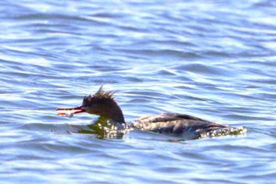獲物を捕らえたウミアイサ(メス)