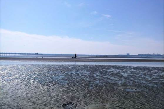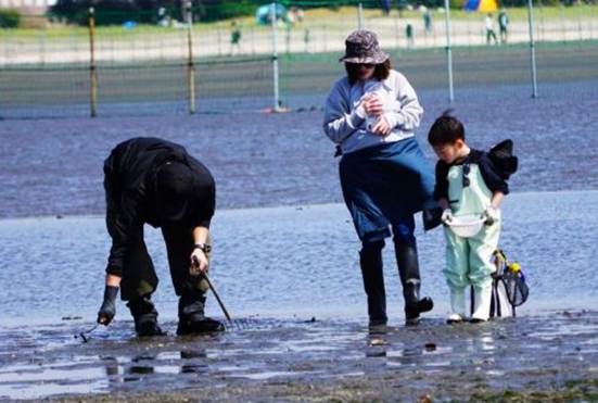 家族連れが潮干狩りにやってきて賑やかになった