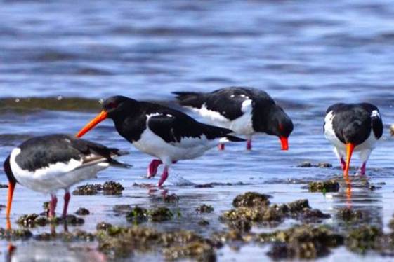 牡蠣殻島ではミヤコドリとハマシギが採餌中